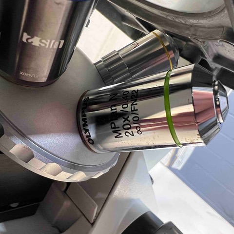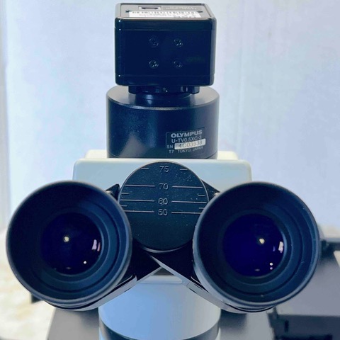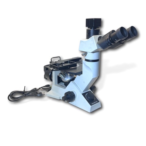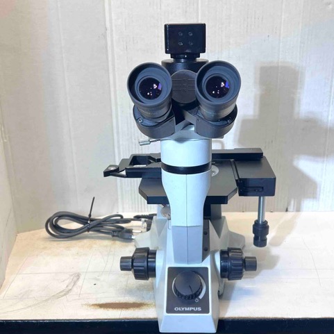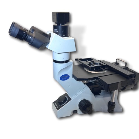 This Olympus GX41F Inverted Compound Microscope is professionally cleaned and tested, equipped with 5.0MP digital USB camera. It is in very good condition. Outfitted with: