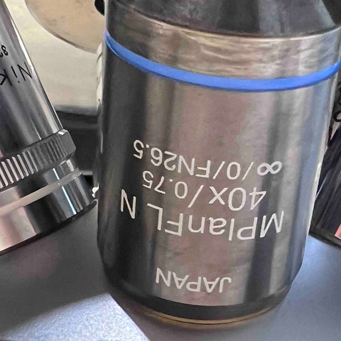 - 4 Position Turret Nosepiece with 10x, 20x, 40x, 100x Objective Lenses