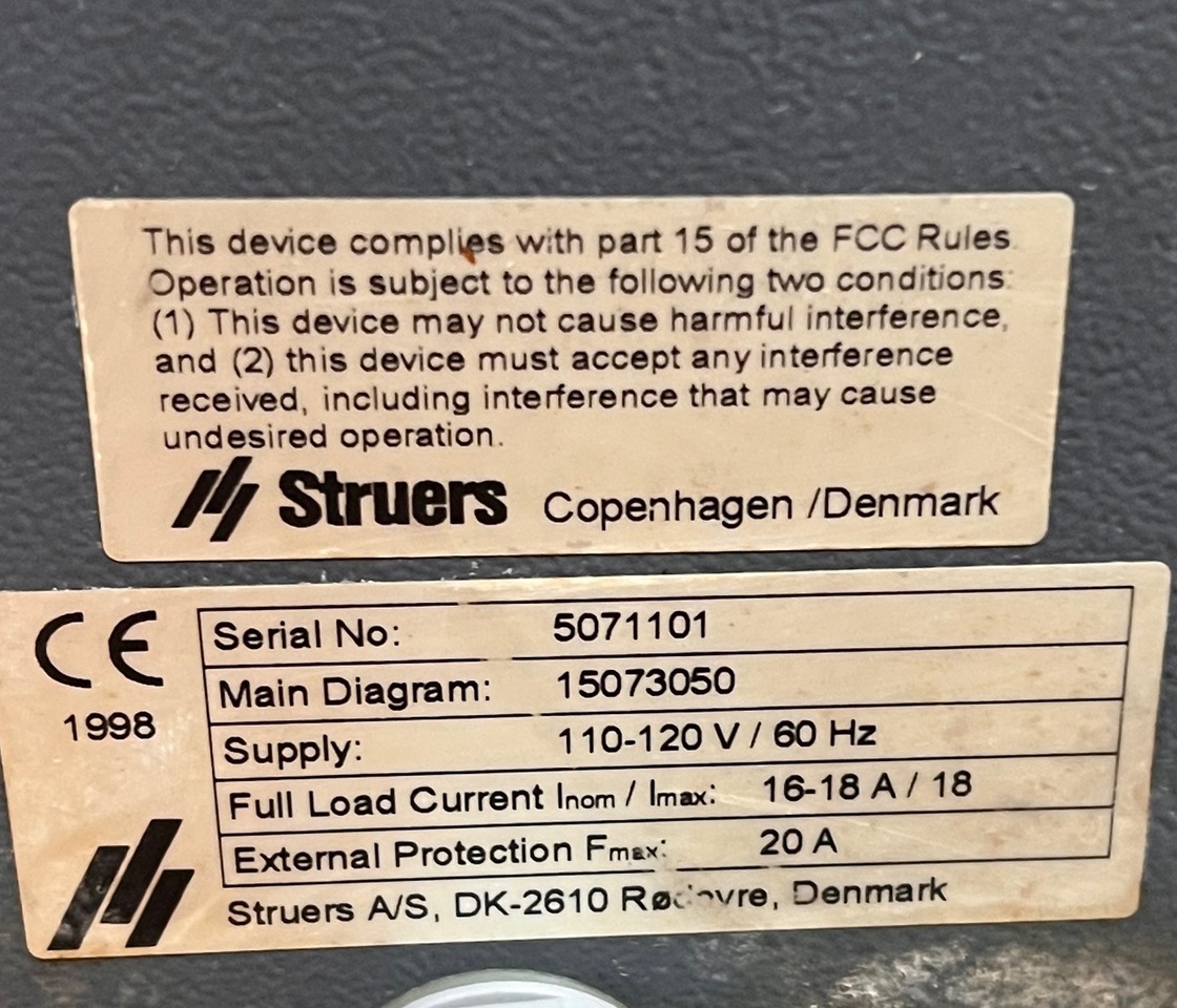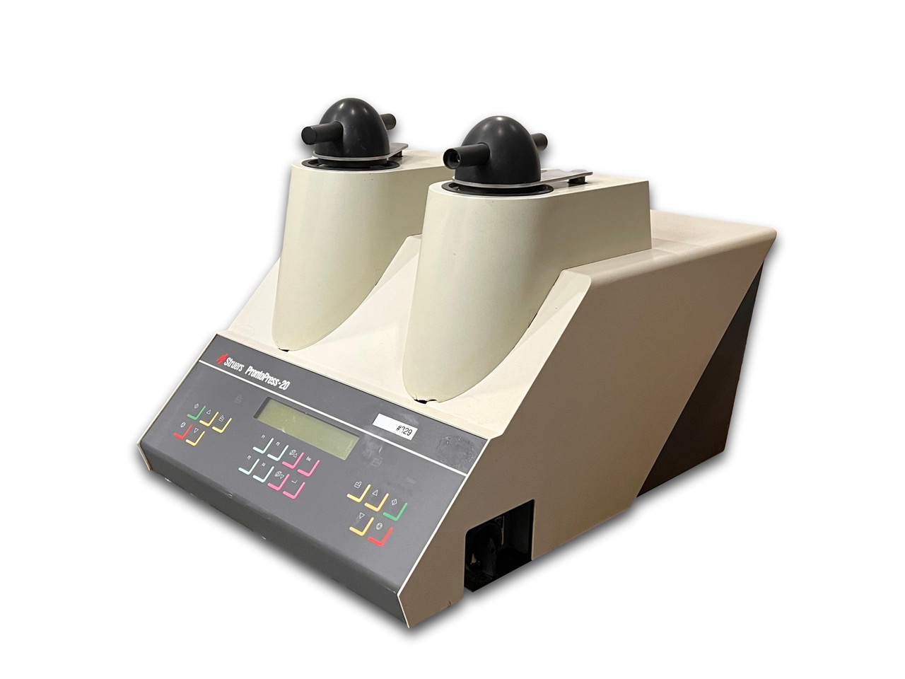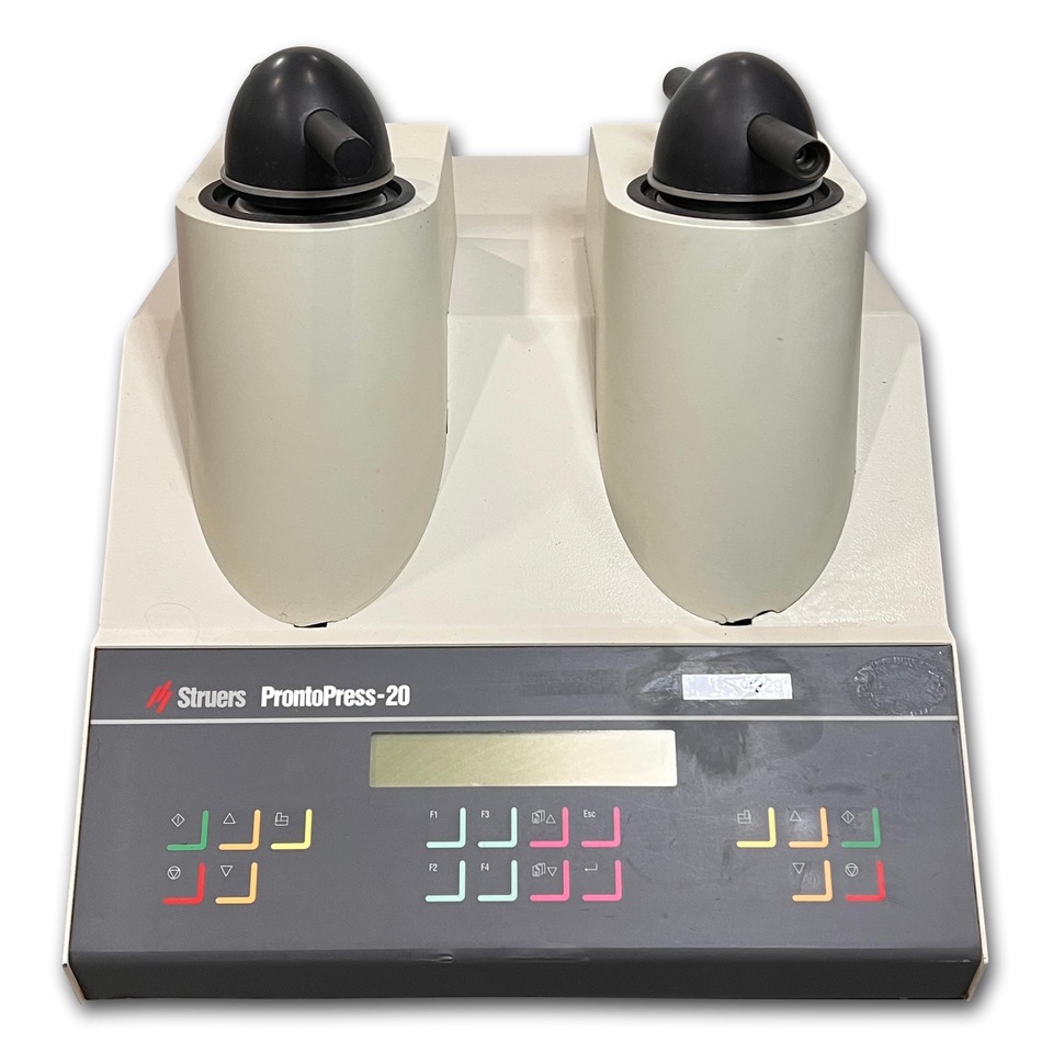 The Struers ProntoPress-20 is a programmable electrohydraulic press with dual cylinders. Features full programming of all mounting parameters, and storage of methods.